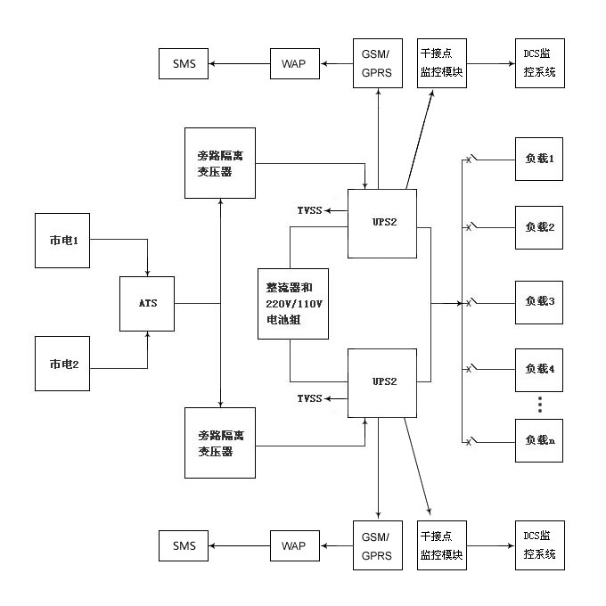 3) 充分利用電力行業的220V/110V大容量電池組,可最大限度的延長UPS的后備時間,并節省電池組的安裝空間和前期投資。